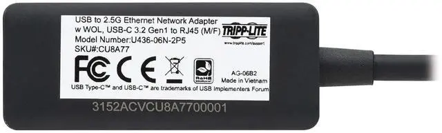 Features | USB-C 3.2 to Gigabit Ethernet Adapter Connects you to a Wired 2.5G Network This USB-C network adapter instantly connects your MacBook, tablet or Windows laptop to a wired network through a USB-C or Thunderbolt port. No internal Ethernet card is required. Ideal for settings in which Wi-Fi is unavailable, weak or spotty, this USB 3.2 Gen 1 adapter lets you enjoy Ethernet speeds up to 2.5 Gbps (when connected to Cat8 cabling) for large file downloads, video conferences, online gaming and high-definition live streaming without buffering. It's also backward compatible with 10/100/1000 Mbps networks to ensure compatibility with all your devices.