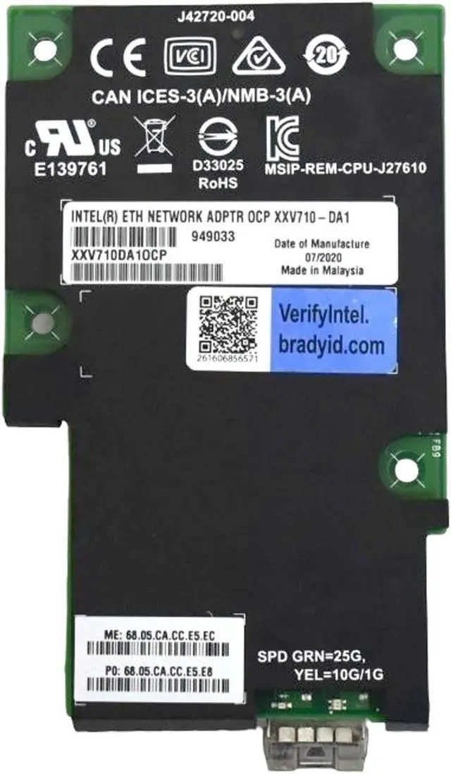 Intel XXV710-DA1 25GbE PCIe 3.0 x8 SFP28 Network Adapter" is a high-speed network card designed for enterprise environments, offering a 25Gbps Ethernet connection through an SFP28 port. It supports PCIe 3.0 x8 for fast data transfer and is compatible with various operating systems, ensuring broad deployment flexibility. This adapter is ideal for bandwidth-intensive applications like virtualization, data centers, and cloud computing, providing reliable and scalable network performance.