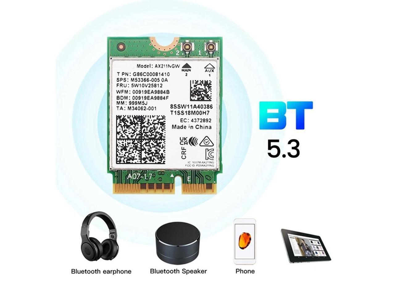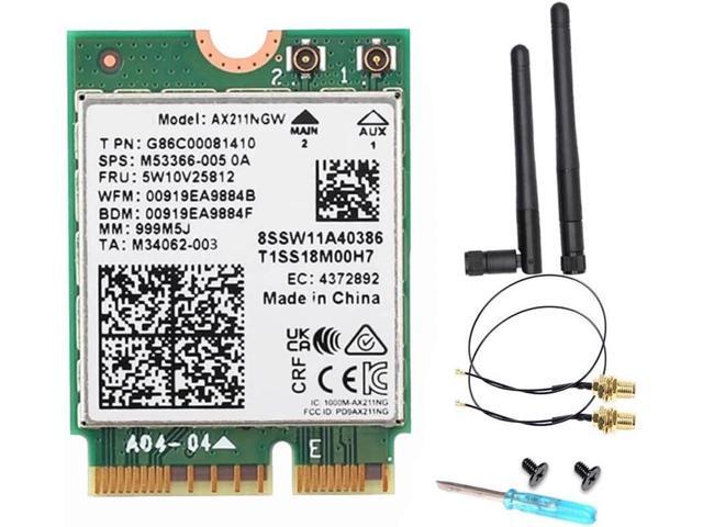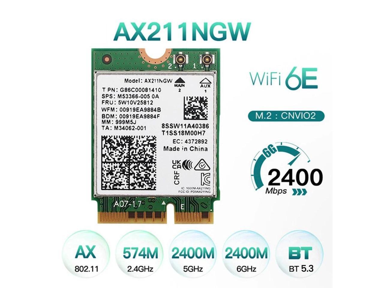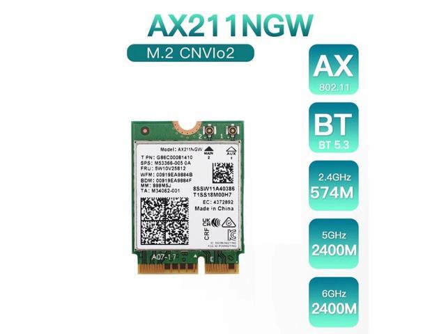 Intel AX211 WiFi 6E Card, Tri-Band, Up to 2.4 Gbps, M.2 CNVio2, Bluetooth 5.3, Windows 10/11 Linux Compatible