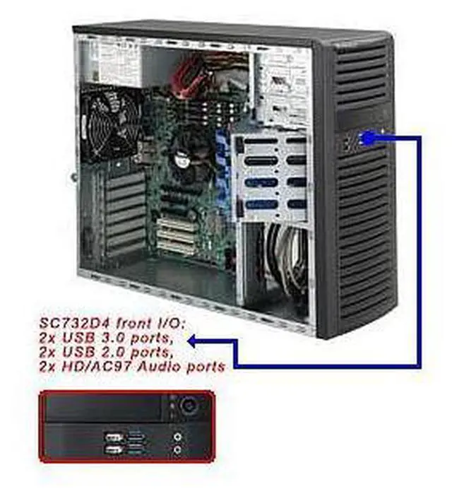• CSE-732D4-903B Mid-Tower Chassis 900W, 4 Internal SAS / SATA Bays, 2x 5.25in Peripheral Drive Bays, 1x 3.5in Peripheral Drive Bay