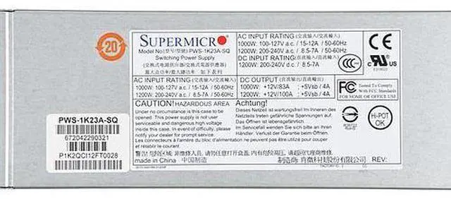 PWS-1K23A-SQ 1U 1000W/1200W Redundant Titanium Hot-Swappable Power Supply