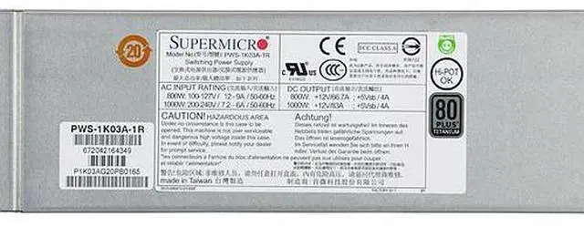• PWS-1K03A-1R 1U 1000W Redundant Titanium Certified Power Supply With PMBus Support