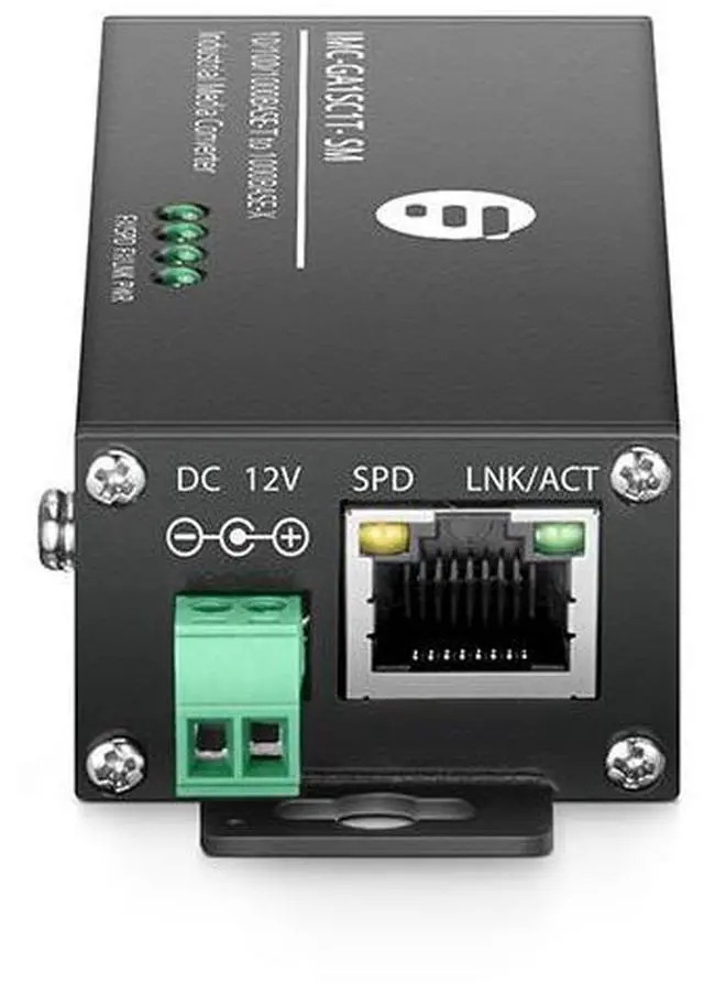 • Mini Industrial Unmanaged 10/100/1000Base-T RJ45 to 1000Base-T SC Converter, SM