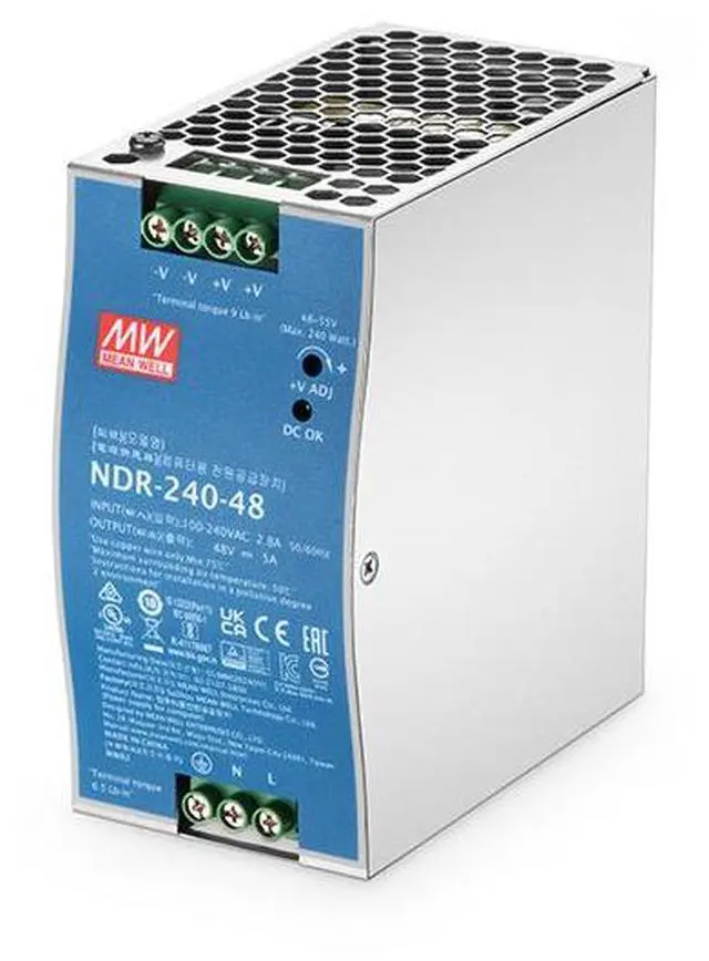 240W Slim DIN Rail Industria Power Supply, PF0.95 240W 48 to 55 VDC -20 to 70C Metal Housing