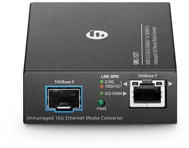 Unmanaged 100M/1/2.5/5/10GBase-T RJ45 to 10GBase-X SFP+ Converter, SM & MM WDM Auto MDI/MDIX 0 to 50C