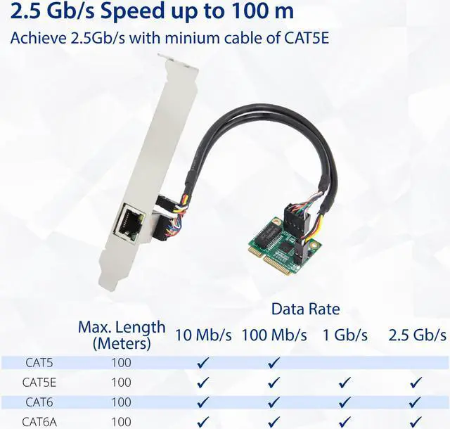 • What You Get: IO Crest 2.5 Gigabit Mini PCI-E Network Card x1, Driver Disk x1, 8cm Low-profile Bracket