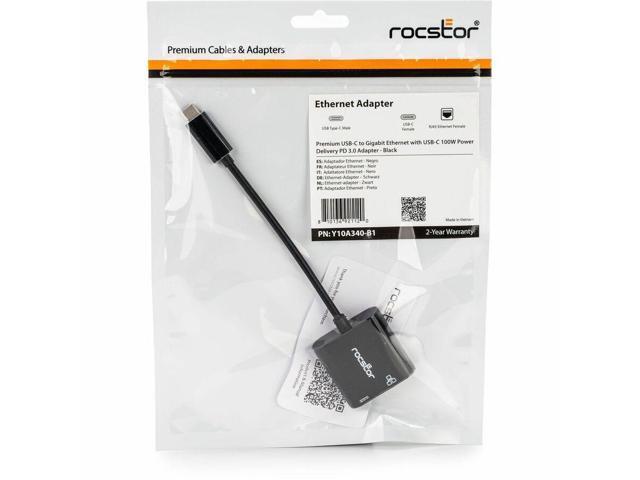 Rocstor Premium USB-C to Gigabit Ethernet with USB-C 100W Power Delivery PD 3.0 Adapter - USB Type C - 2 Port(s) - 1 - Twisted Pair - 10/100/1000Base-T
