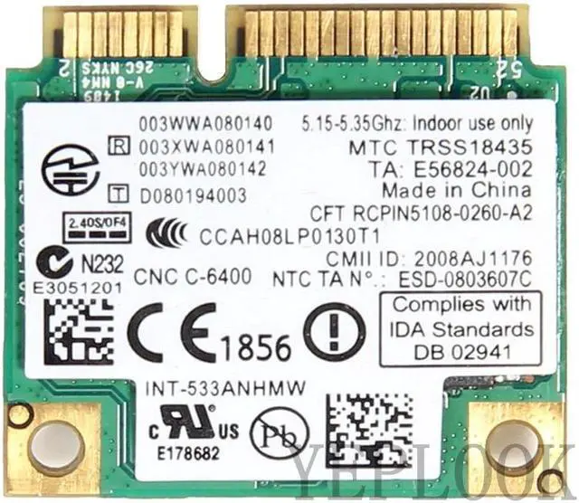 Feature: The Intel 5300 is a family of IEEE 802.11 a/b/g/Draft-N1 wireless network adapters that operate in both the 2.4 GHz and 5.0 GHz spectra. These adapters, available in both PCIe* Mini Card and Half Mini Card form factor deliver up to 450 Mbps of bandwidth2 via features such as MIMO technology 40 MHz Channel support, and Packet Aggregation. The widespread acceptance of 802.11 Draft-N1 products has been driven by users seeking to exchange information in a timely manner, stream High Definition (HD) video, and handle voice, video, and data traffic concurrently. This has led to the adoption of 802.11 Draft-N1 as a key technology component in both Consumer and Enterprise notebook PCs. The Intel WiFi Link 5000 Series Wireless Adapters incorporate this 802.11 Draft-N1 technology with the Intel Ultimate N WiFi Link 5300 Series delivering leading edge bandwidths of up to 450Mbps.