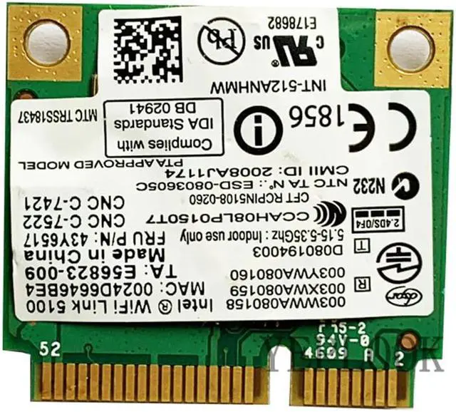 The Intel WiFi Link 5100 Series is a family of IEEE 802.11 a/b/g/Draft-N wireless network adapters that operate in both the 2.4 GHz and 5.0 GHz spectra. These adapters, available in both PCIe Mini Card and Half Mini Card form factor deliver up to 300 Mbps of receive bandwidth; in addition to providing a host of features that enhance today's mobile lifestyle. Intel Wireless Half Size Mini PCI 512AN_HMW WiFi Link Express 300Mbps IEEE 802.11 n (draft), IEEE 802.11 a/b/g The Intel WiFi Link 5100 Series is a family of IEEE 802.11 a/b/g/Draft-N1 wireless network adapters that operate in both the 2.4 GHz and 5.0 GHz spectra.