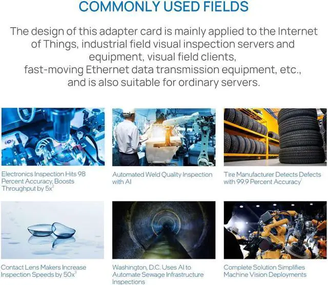 • This adapter card has integrated hardware acceleration function and can perform TCP / UDP / IP checksum offload and TCP segmentation tasks.