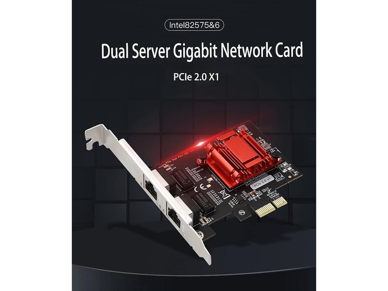 Dual-Port PCIe Gigabit Network Card 1000M PCI Express Ethernet Adapter with Intel 82575/82576 Two Ports LAN NIC Card for Support PXE for Windows/Windows Server/Linux/Freebsd /DOS with Low Profile
