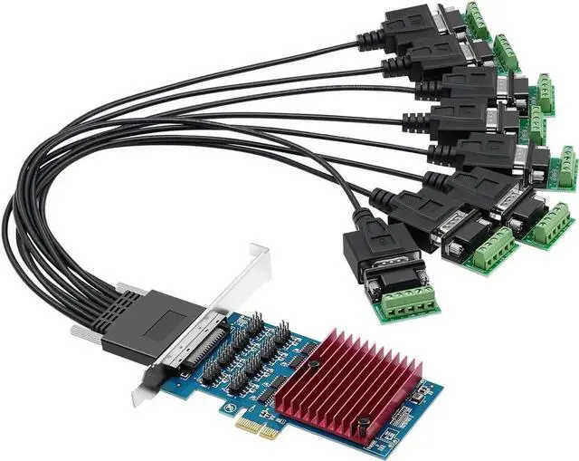 "Broad PCIe Slot Compatibility", Works seamlessly with PCIe X1/X4/X8/X16 slots, converting PCIe signals to balanced RS-422/485 differential signals. Perfect for integrating legacy serial devices (e.g., DR62-to-RS232) into modern systems.