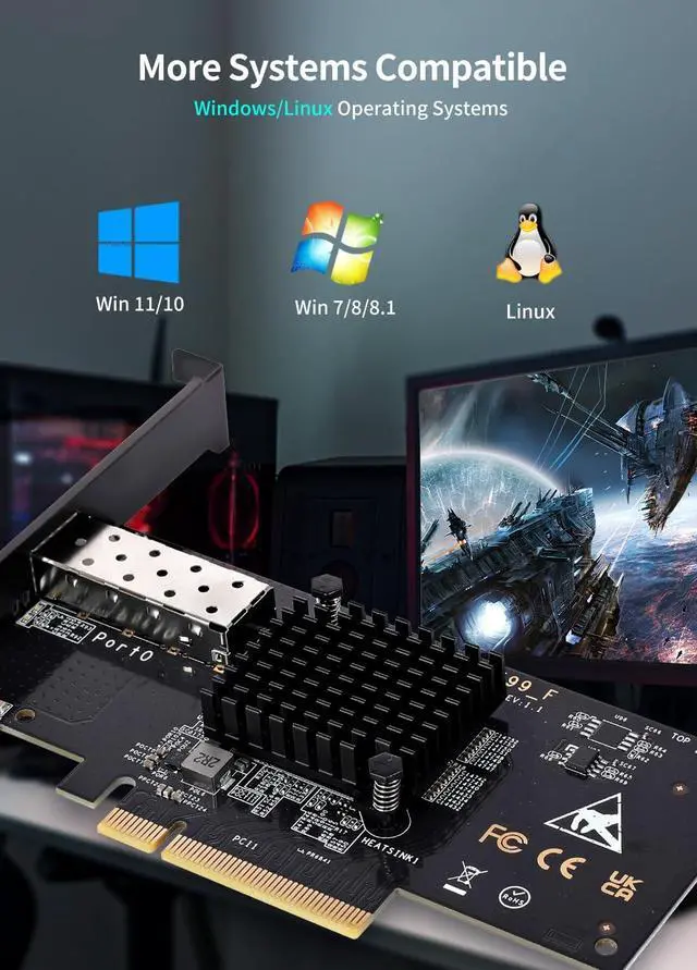 PCIe to 10Gbe RJ45: This 10G BASE-T PCIe network adapter converts PCIe slots (X1/X4/X8/16) into 10G RJ-45 Ethernet ports. Note: Only for PCIe ports, not for PCI slots.