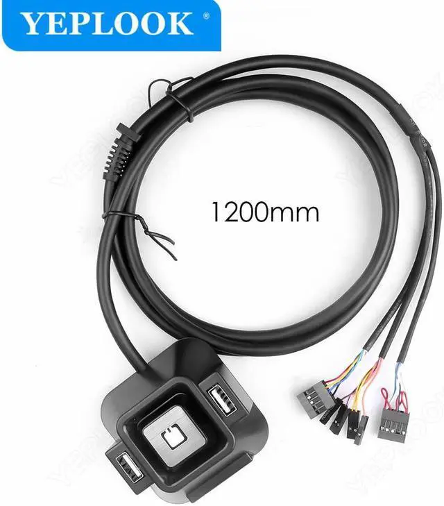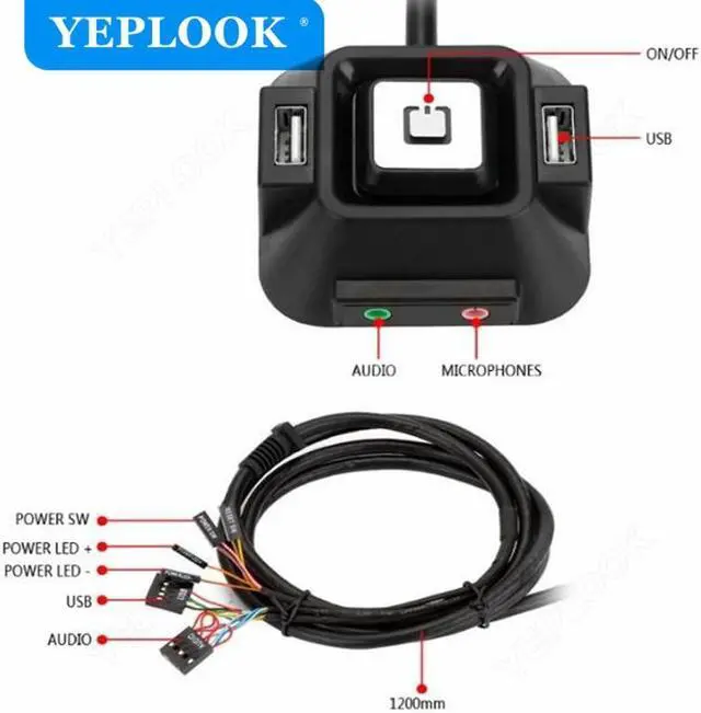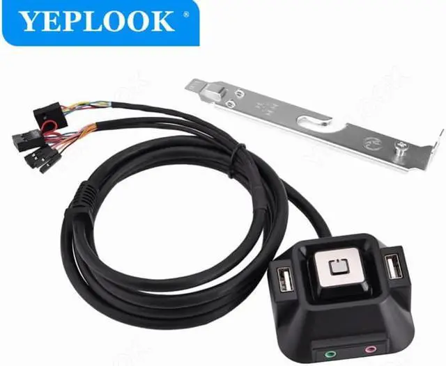 Desktop Computer Switch Extender Cable 1.2 m Multifunction with Power on/off Reset Button with 2x USB 2.0 + Audio Microphone Port
