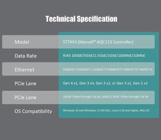 | 6-Speed Data Rate | RJ45 10GbE/5GbE/2.5GbE/1GbE/100MbE/10MbE |