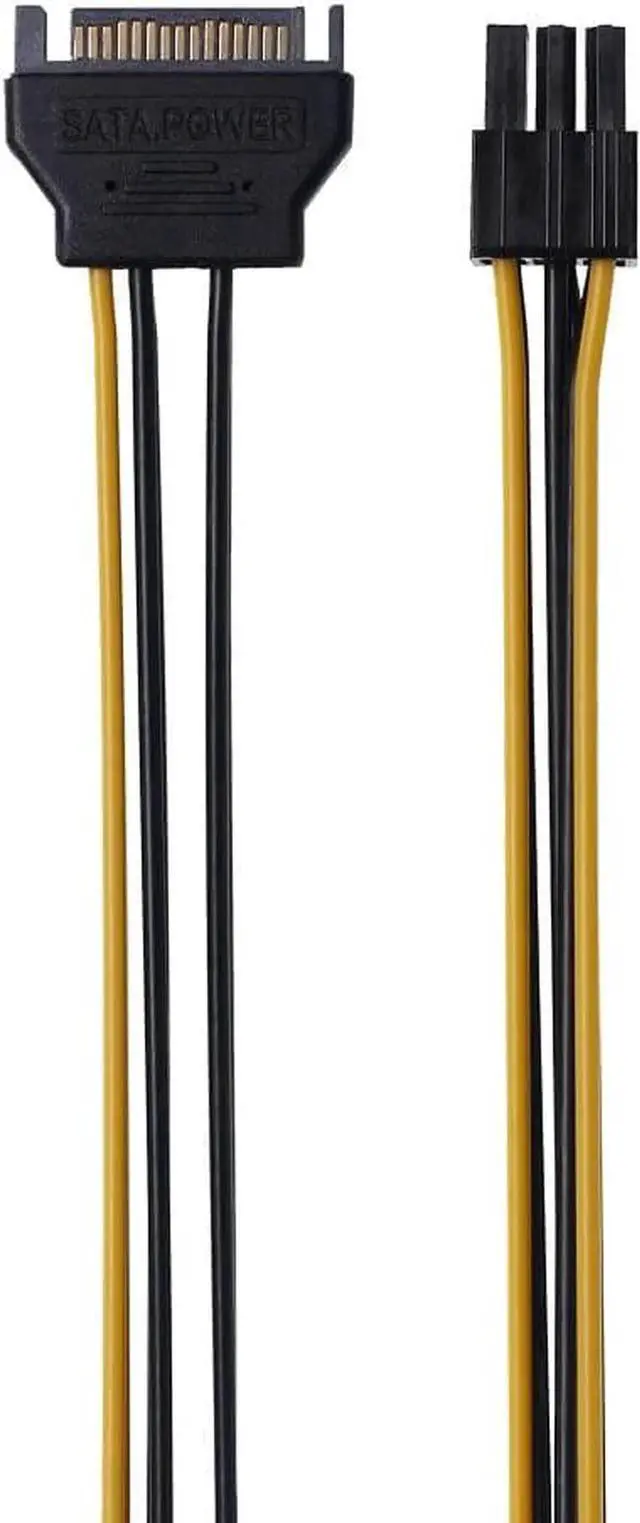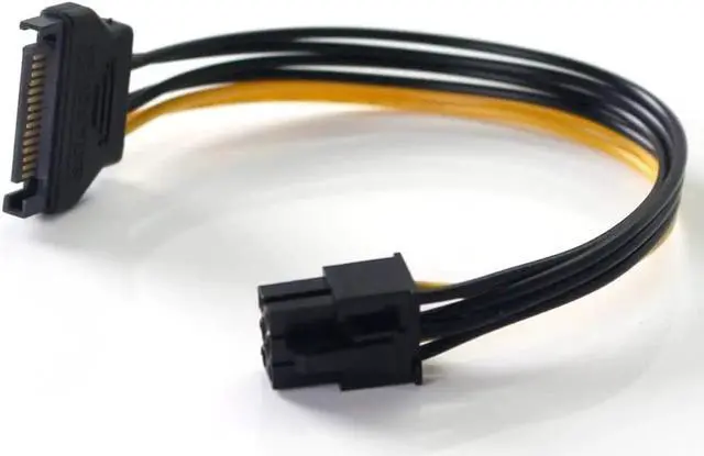 SATA 15 pin to 6 pin adapter power your video card using this cable. It is perfect if you don't have enough PCI-E power connectors to run your video card.