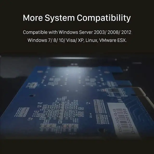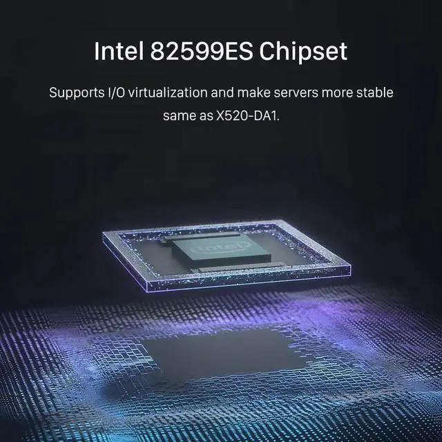 Equipped with original Intel 82599ES controller chip which supports most of servers and make more stable, reduced the utilization of CPU, also support Intelligent Offloads and more function.