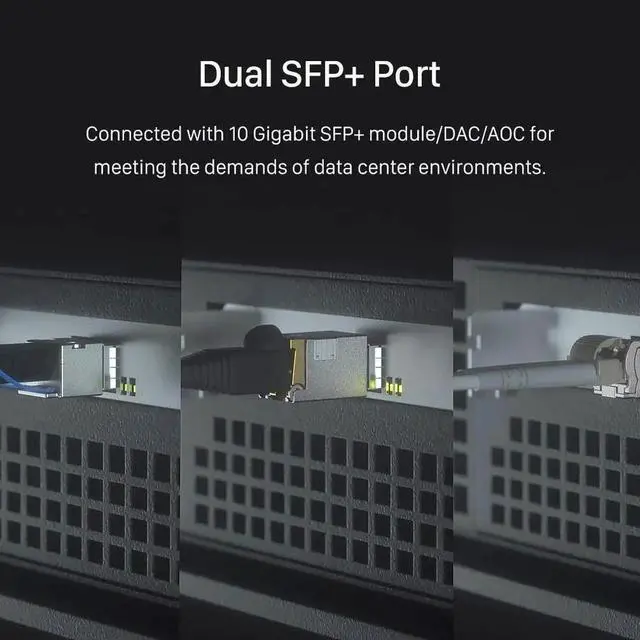 Dual SFP+ Ports, support 10 Gigabit SFP+ module/DAC/AOC for meeting the demands of data center environments.