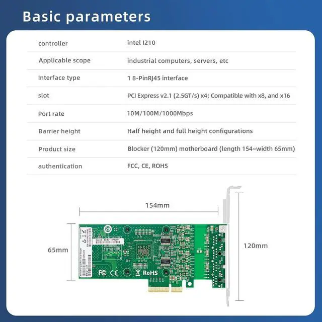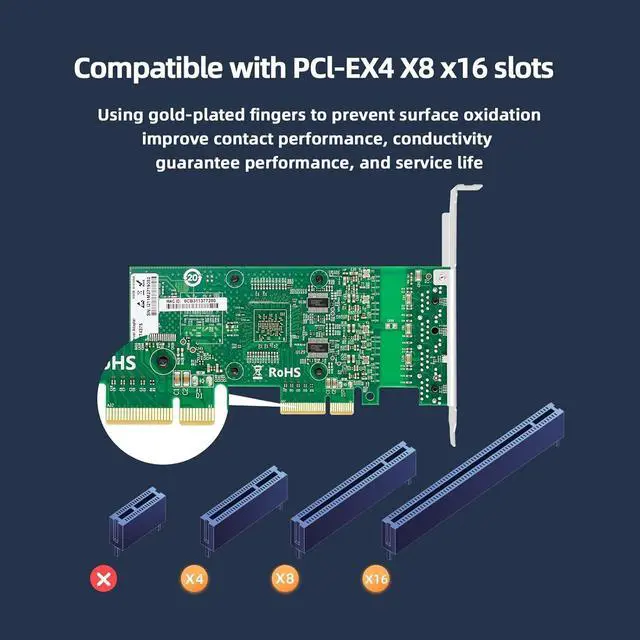 This Single port 5Gbps PCIe network card adds one copper Ethernet port to your Server or Desktop computer and provides Multi-giga-bit Ethernet access to your network at five speeds: 5Gbps, 2.5 bps, 1G, 100Mbps and 10Mbps