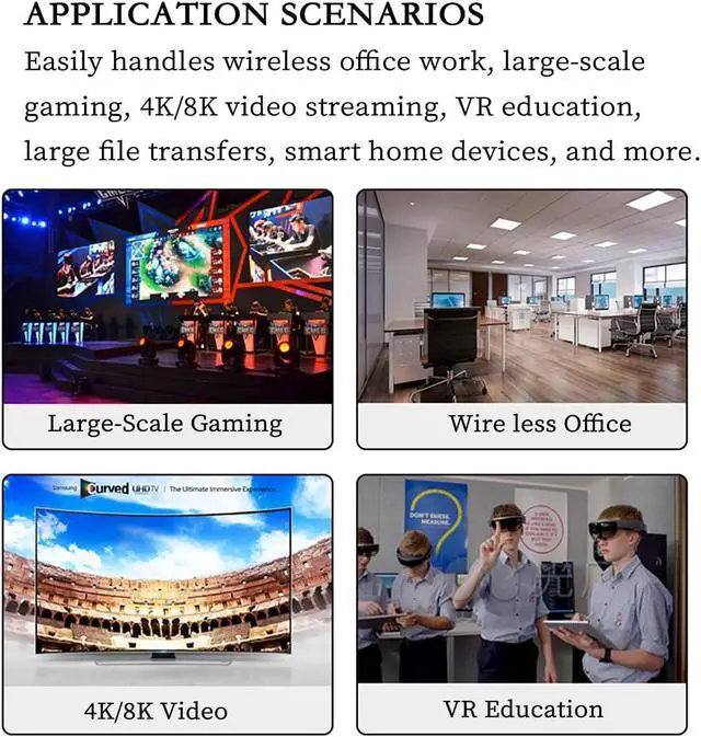Tri-Band Connectivity & MU-MIMO Support Offers simultaneous 6 GHz, 5 GHz and 2.4 GHz operation with MU-MIMO technology, ensuring efficient multi-device connections and smooth streaming, gaming, and data transfer.