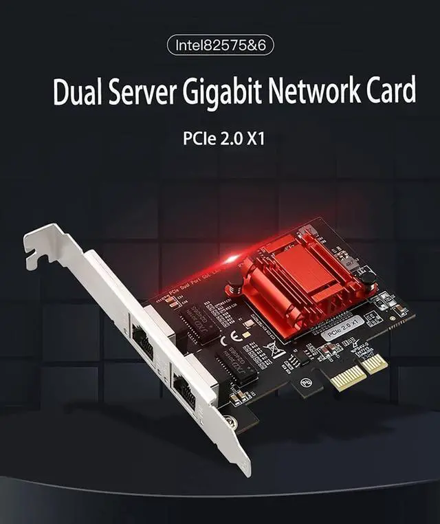 Dual-Port PCIe Giga-bit Network Card 1000M PCI Express Ethernet Adapter with in-tel 82575/82576 Two Ports LAN NIC Card for Support PXE for Windows/Windows Server/Linux/Freebsd/DOS with Low Profile