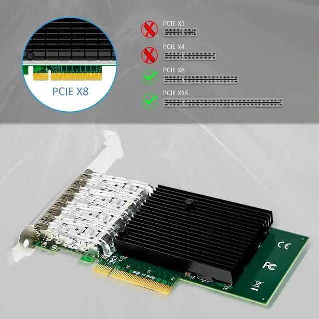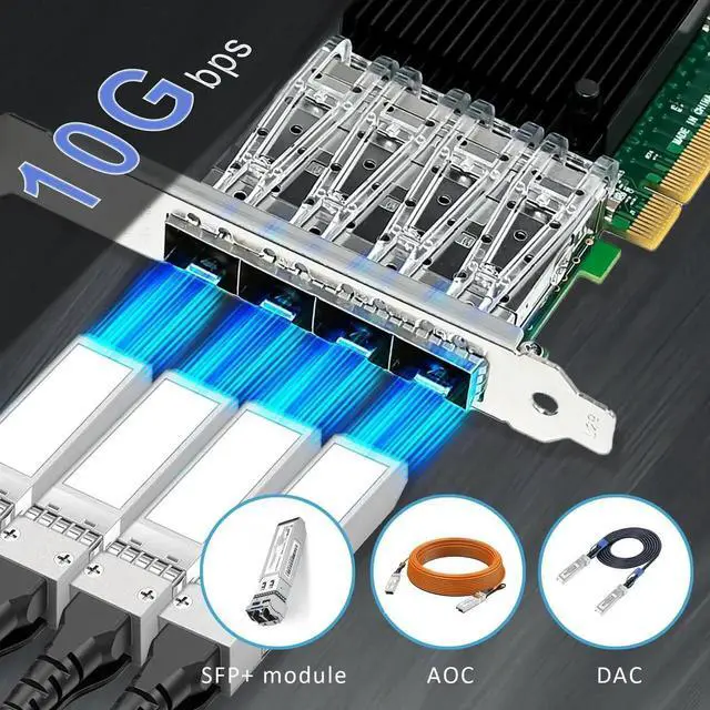 Vszerda ST7219 4-Port 10G SFP+ Ethernet Network Card with Intel X710-BM1 Controller, PCIE 3.0 X8 Interface, Support Windows 11/10/Windows Server/Linux/ESX/VMware ESXi(Not Support Mac OS)