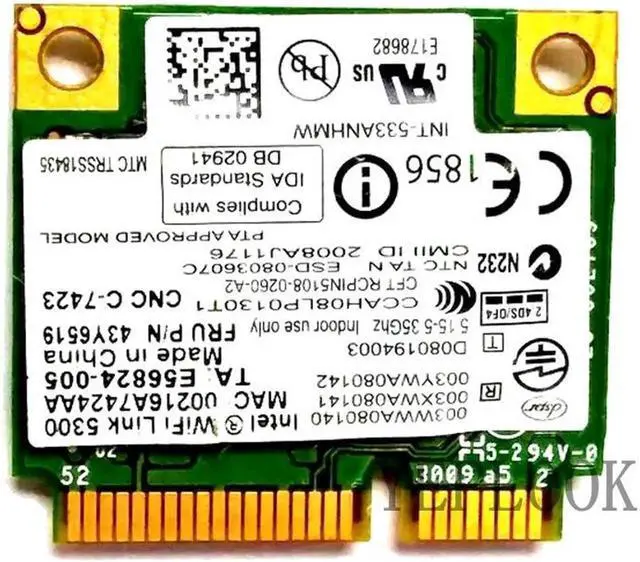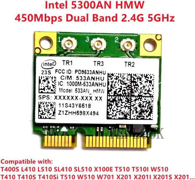 • 5300 533AN HMW 450Mbps Dual Band 2.4G 5GHz Wireless Wifi Mini PCI-E Half pcie Card for T400S L410 L510 SL410 SL510 X100E
