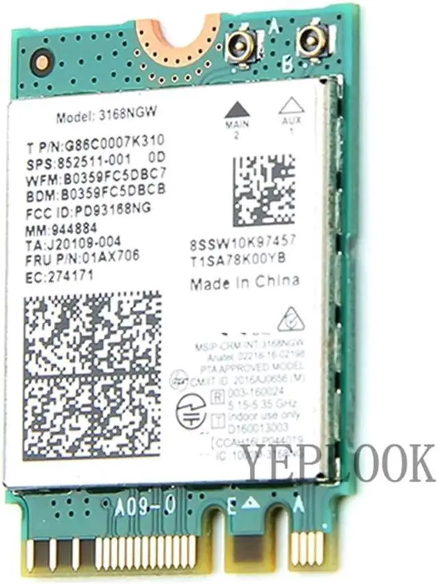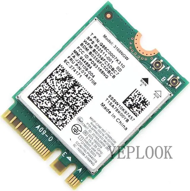 AC3168 3168NGW 3168ac Dual Band 2.4G /5Ghz 433Mbps WiFi + Bluetooth 4.2 802.11 ac NGFF M. 2 WiFi Network Card SPS 852511-001 FRU 01AX706 For HP K12 PB450 G5 PB640 G4 ProBook 440 450 470Series The Intel Dual Band Wireless-AC 3168 is Intel's 3rd generation 802.11 ac, dual band, 1x1 Wi-fi + Bluetooth adapter. It's engineered to be faster, stronger, greener than previous gen Intel 802.11 ac 1x1 products with lower power in idle modes, Intel Dynamic Regulatory Solution and complete Microsoft Windows 10 support. Combined with Intel Core processors and exceptional Intel wireless innovations, the Intel Dual Band Wireless-AC 3168 dramatically reshapes your connected experience at home, work or on the go.