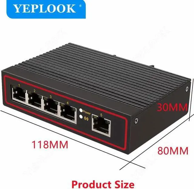 5 Ports RJ45 10/100Mbps Industrial Ethernet Switch Network Switch Signal Strengthen DIN Rail Type Support DC 5V-58V Input, Plug and Play, Lightning Protection