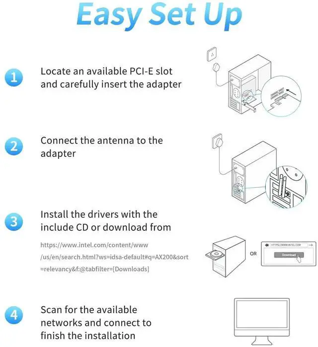 JAENFONG WiFi 6 PCIe Card for Desktop, Bluetooth 5.2, AX200NGW chip, Dual Band Wireless Adapter with MU-MIMO, OFDMA,Ultra-Low Latency, Supports Windows 11/10 (64bit)