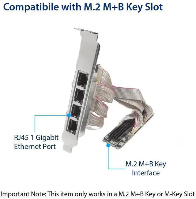 The 4 Port Gigabit M.2 M+B Key Ethernet Module is a high-performance networking solution designed to enhance connectivity and data transfer capabilities in a wide range of computing environments. Leveraging the power of the Realtek RTL8111H chipset, this Ethernet card delivers robust Gigabit Ethernet connectivity, making it ideal for applications where speed, reliability, and versatility are paramount.