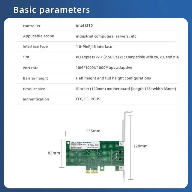 This Single port 5Gbps PCIe network card adds one copper Ethernet port to your Server or Desktop computer and provides Multi-giga-bit Ethernet access to your network at five speeds: 5Gbps, 2.5 bps, 1G, 100Mbps and 10Mbps