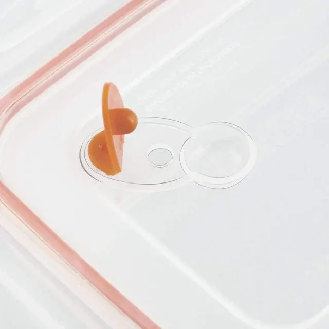 Features: Steam release vent in the lid prevents steam from building up in the microwave Color coded features in both the lid and base aids in easily identifying the proper lid and base combination Clear base 5.8 cup capacity