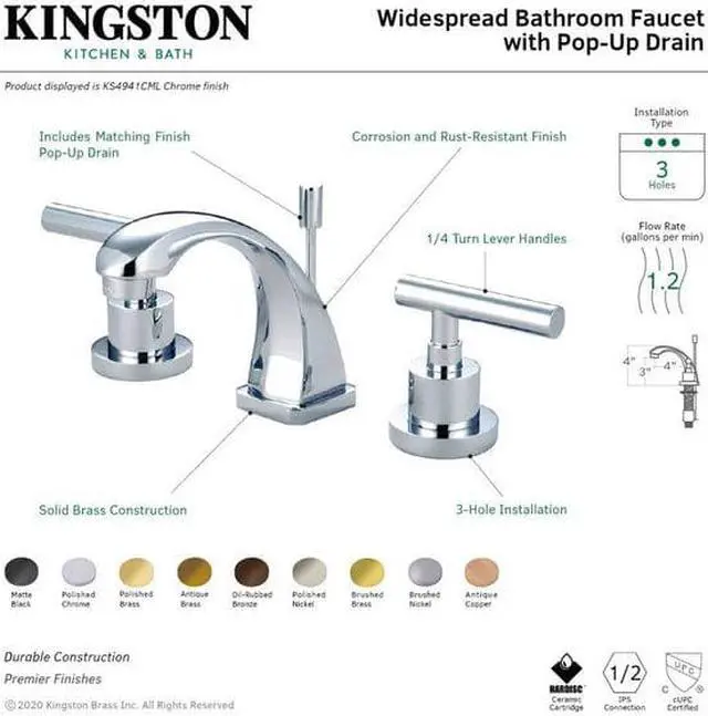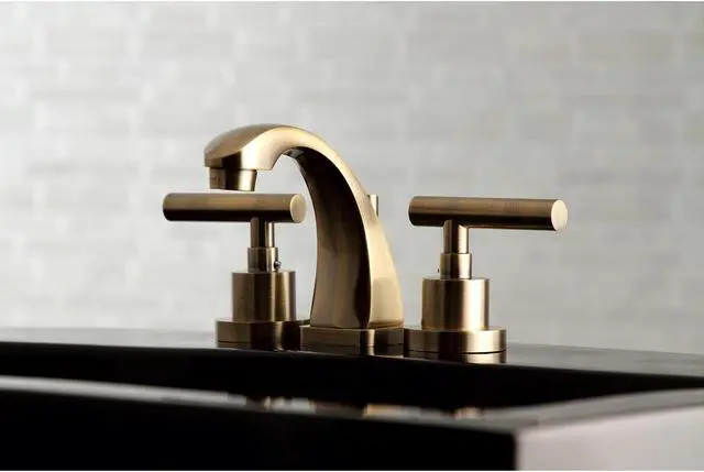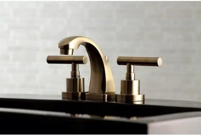 Embellish your contemporary home with the swankiness and elegance that this faucet provides. Ideal for more spacious bathrooms- widespread faucets are more spread apart and feature a 3-hole installation. The Manhattan 8-Inch Widespread Lavatory Faucet with Brass Pop-Up and its featured sturdy brass construction and premium vintage brass finish are guaranteed to glamorize your home's modern ensemble for years to come. Emulate the distinguished opulence of Manhattan with this faucet's departure from mediocrity. A matching finish drain is also included.
