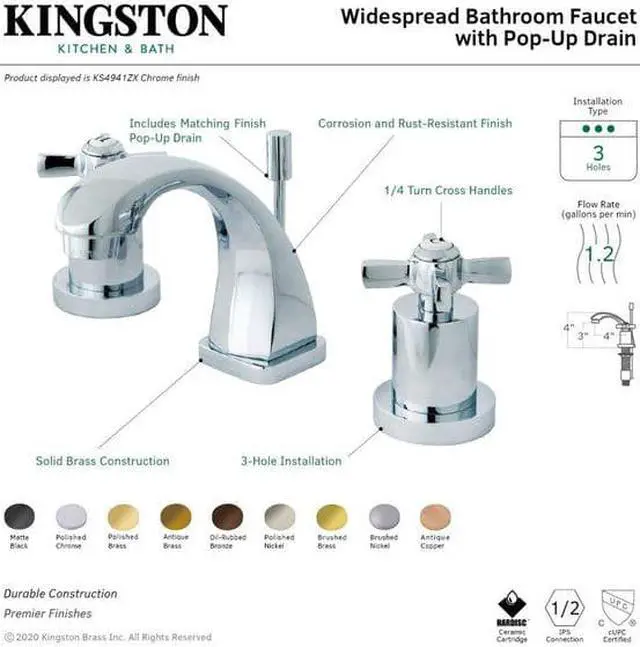 The eclectic style of the 1930s Art Deco style is integrated within this faucet's classical design. Ideal for more spacious bathrooms- widespread faucets are more spread apart and feature a 3-hole installation. The Millennium 8-Inch Widespread Lavatory Faucet with Brass Pop-Up and its featured sturdy brass construction and premium vintage brass finish are guaranteed to glamorize your home's modern ensemble for years to come. The elegant design of this faucet will spark praise for your exquisitely-styled bathroom. A matching finish drain is also included. Features Modern Millennium 8 in. Widespread Lavatory Faucet with Brass Pop-Up - Vintage Brass Solid Brass Construction Drip-Free Ceramic Disc Cartridge Includes Matching Brass Pop-Up Drain Dual Cross Handles for Easy Rotation Corrosion-Resistant Finish Designed for Long-Lasting