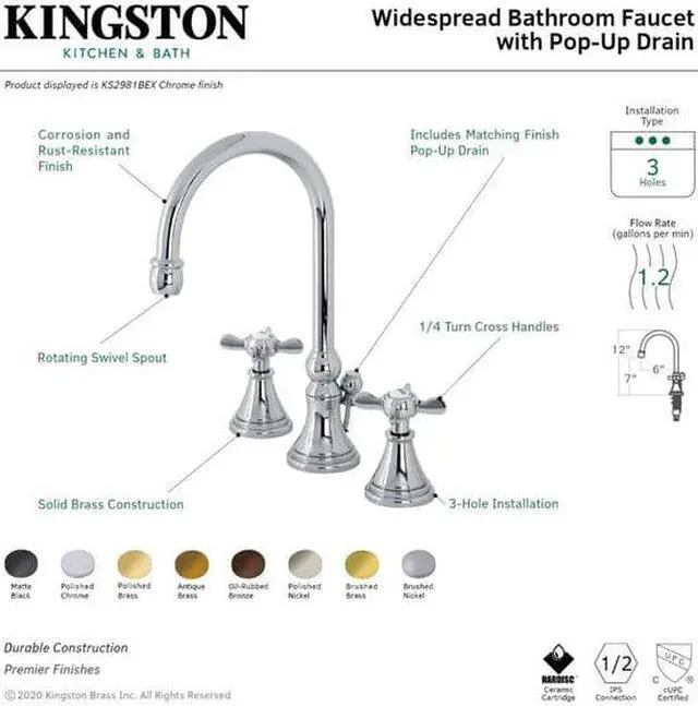 The spirit of the Victorian Era finds itself elegantly and eagerly spun into the unique design of this faucet. Ideal for more spacious bathrooms- widespread faucets are more spread apart and feature a 3-hole installation. The Essex widespread bathroom faucet with brass pop-up and its featured sturdy brass construction and premium oil rubbed bronze finish glamorize your home's traditional ensemble for years to come. This faucet adds a sheen of classical grace to your traditional style. A matching finish drain is also included.