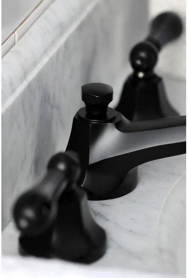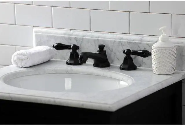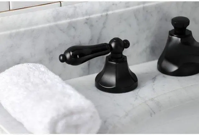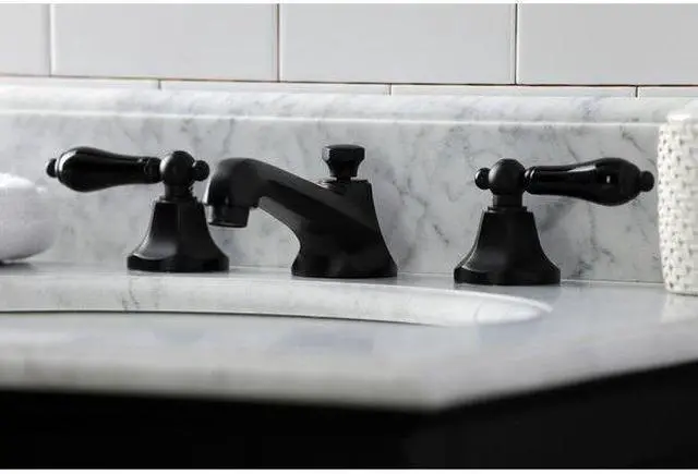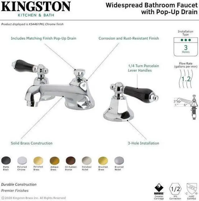 Crafted in commendations to English nobility- the exemplary design of this faucet manifests regality and elegance with its black porcelain handles. Ideal for more spacious bathrooms- widespread faucets are more spread apart and feature a 3-hole installation. The Duchess 8-Inch Widespread Bathroom Faucet with Brass Pop-Up and its featured sturdy brass construction and premium finish glamorize your home's modern ensemble for years to come. Glamorize your home today with the traditional elegance of this faucet. A matching finish drain is also included.
