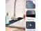 TV Time Direct This silicone faucet mat lets you never worry about water being left on the countertop. Keep your countertop dry with this sturdy silicone faucet mat! The mat made from 100% silicone soft and reliable won't scratch your utensils totally safe to use. The silicone faucets pad new designed for faucet splash with the draining so don't worry about the water stay on the mat or counter. The sink faucet mat splash guard helps prevent water stains from trickling or leaking from the faucet. Large ( 24.01" x 5.7" )