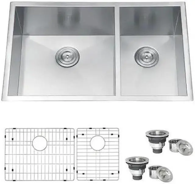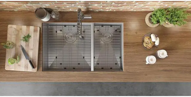 - Included Sink, cut-out template, mounting brackets, rinse grids (set of 2), 2 basket strainers