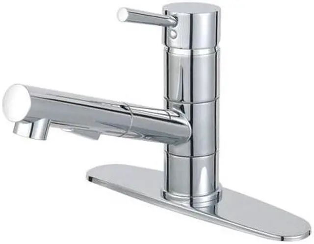 This faucet boasts bold- sleek design with its cylindrical styling. The Concord Single-Handle Pull-Out Kitchen Faucet brings forth a contemporary twist to the popular pull-out style. These faucets are known for their extendable hose reach and two-function sprayers to help tackle tough messes. The brass construction and single handle also provide a sturdy- reliant- and easy to use fixture.