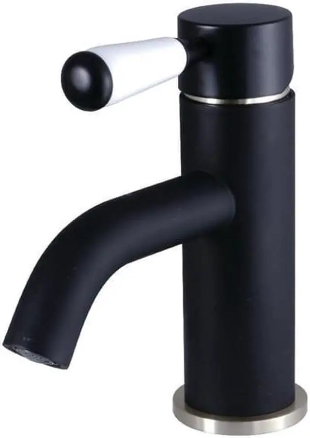 Crafted to bring aesthetic beauty alongside exceptional performance- the feature of porcelain lever handles and rounded architecture solidifies pristine refinement in this faucet. Single-hole bathroom faucets provide a more streamlined look. Also- they will allow your bathroom to appear more spacious with the limited counter space they require. The Paris Single Hole Single-Handle Bathroom Faucet and its featured sturdy brass construction and premium matte black/brushed nickel finish are guaranteed to glamorize your home's modern ensemble for years to come. Embolden your home ensemble with the addition of this exquisite fixture. A matching finish drain is also included.