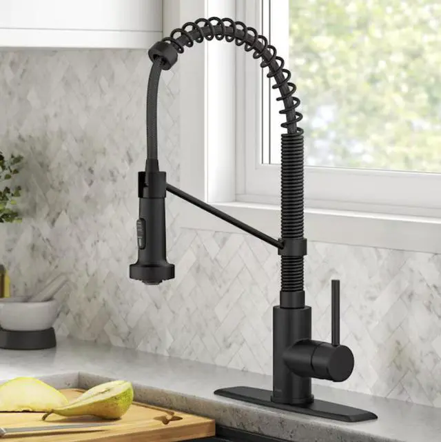 Kitchen faucet with pull down sprayer is built to last with heavy-duty metal body and durable nylon water lines