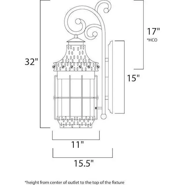 Maxim 30085CDCF Nantucket American Style Seedy Glass Outdoor Wall Sconce, 4-Light 240 Total Watts, 32"H x 11"W, Country Forge