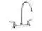 • This faucet boasts a classic exterior, and dual levers to adjust temperature and water pressure. Enjoy splashless washing due to the generous aerated stream.