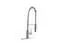 • One-handle commercial-style residential kitchen faucet to adjust temperature and water flow. Lock bar for secure fastening of spout. Dual function spring sprayer head toggles from aerated and spray streams. High-arc spout for oversized items.
