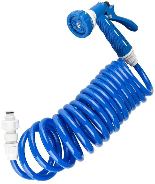 Dura Faucet DF-SA187-WT RV Exterior Quick Connect Sprayer with 7 Spray Settings and Coiled Hose Kit (Blue)