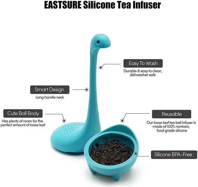 Unique Present: Perfect gift for your tea loving friends and family! 5.100 % Food Safe and Made of BPA-free Silicone Loch Ness Monster Dinosaur Tea Infuser Will Make Tea Time That Much More Fun.
