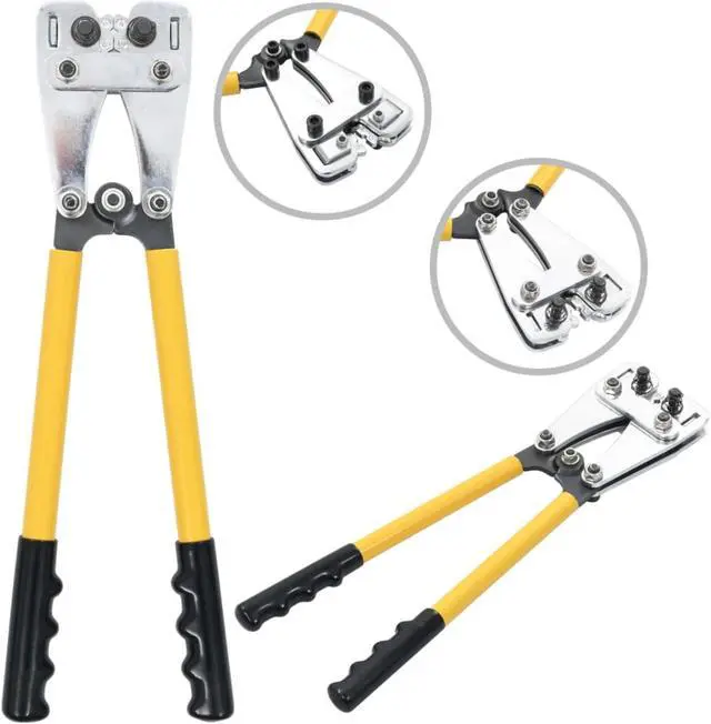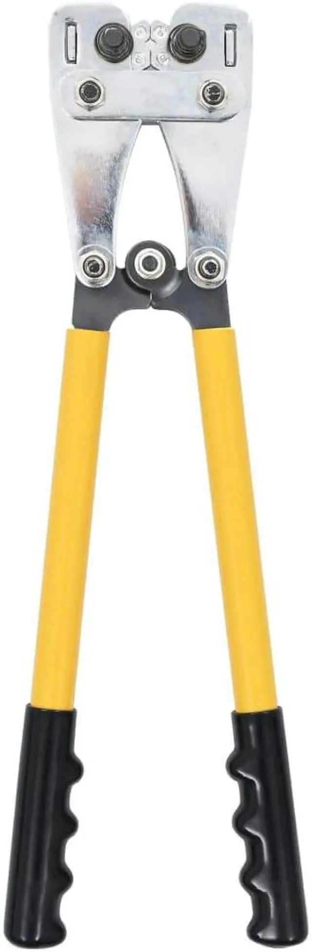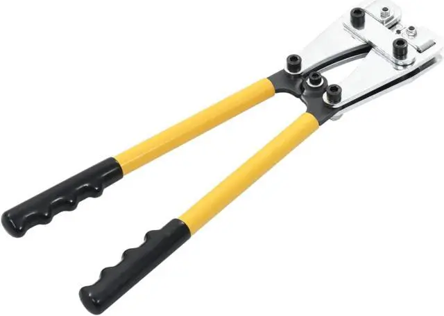 These portable and user-friendly hydraulic crimping pliers have been designed for the safe and secure crimping of wires, as well as stripping wires. Made of steel, the crimping pliers are extremely durable. The ergonomically designed handle is comfortable to hold. It can deal with wires of sizes from 0.009 in² to 0.078 in².
