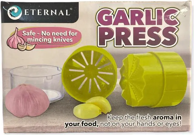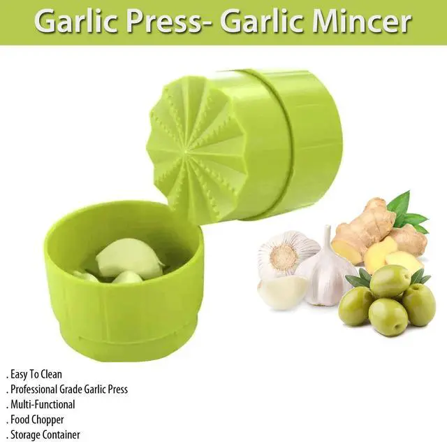 Eternal This ingenious garlic mincer can also mince ginger olives and herbs with twists. Ideal for prepping garlic spread. Saves time by quickly chopping garlic and keep it off your hands. It includes a practical mini storage. The contents are easy to remove and its easy to clean. Just place it in the dishwasher machine or run through ginger or olives Clean up could not be any easier. No more manually handchopping your garlic. This garlic press perfectly minces chops and grinds garlic so your veggie meat sauce or salad Storage Container.