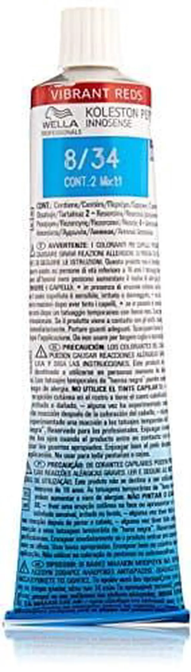 Wella Koleston Perfect Innosense Light Copper Gold 8/34 60ml offers you prestige colouring results. It will leave your locks with a distinctive glowing shine that lasts. With 100% grey coverage, your hair will look naturally stunning. Wella Koleston Perfect Innosense Light Copper Gold 8/34 60 ml uses an intense formula to enable the most intense, evenly balanced colour development. The Shine Guard gives your hair a lipid-based film to coat and protect your hair whilst illuminating it with vigorous shine. Please consult instructions